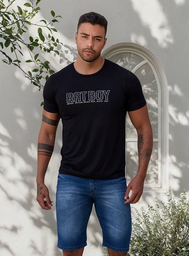 Camiseta Masculina Viscose Estampada Punho Moda Rat Boy