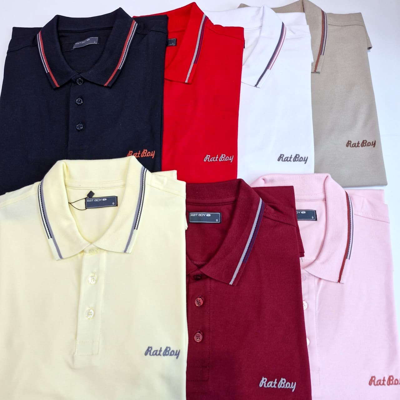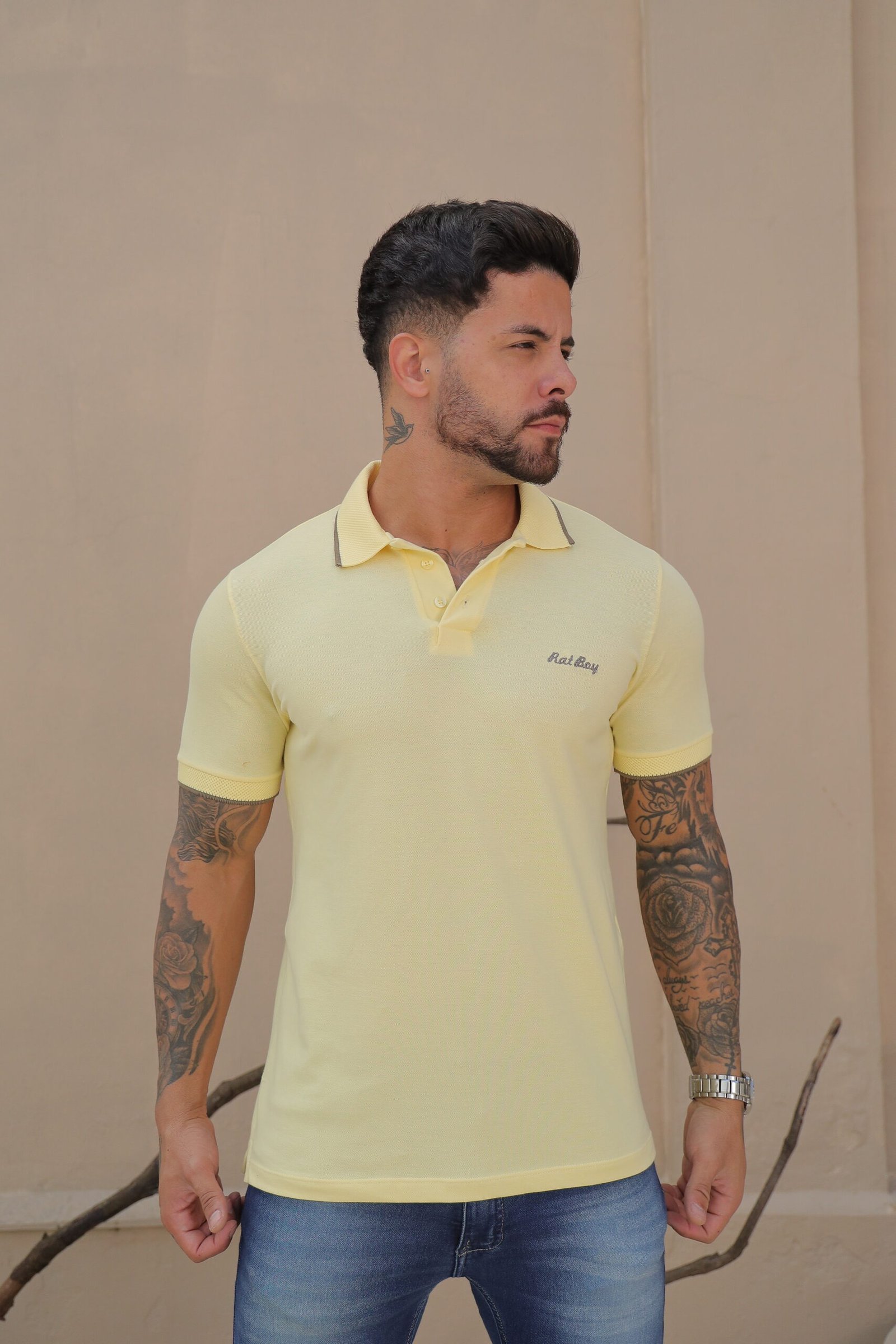 Camiseta Polo Masculina Piquet Ratboy Assinatura Bordado